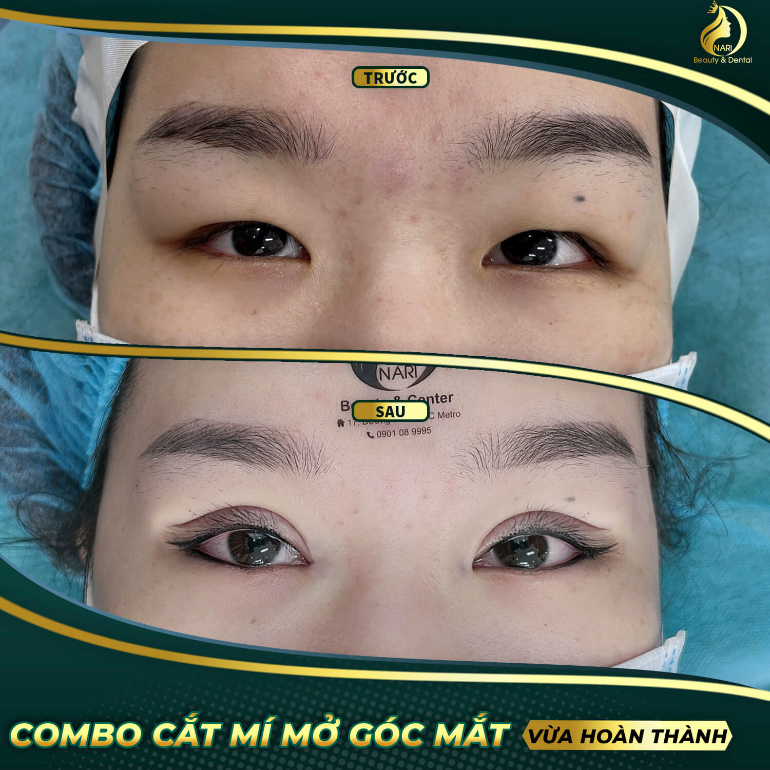 Combo cắt mí và dịch chuyển dây chằng góc mắt cho chị gái U43| Nari Cần Thơ
